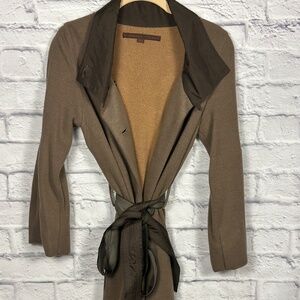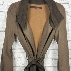 A Common Thread Taupe Belted Coat – Asymmetrical Button Front