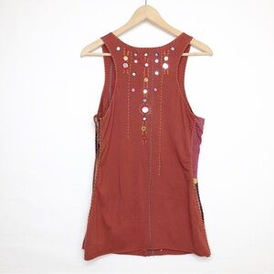 A Common thread boho embroidered embellished tank top