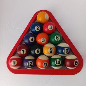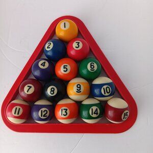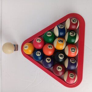 • Complete set: A standard 1.5 inch miniature set includes 16 balls, consisting of the 1 through 15 numbered balls (seven solid, seven striped, and the 8-ball) and one white cue ball.