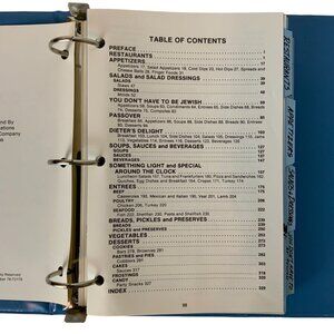 A ring bound community cookbook featuring kosher recipes, categorized sections, and a retro design. A collectible piece of culinary history.