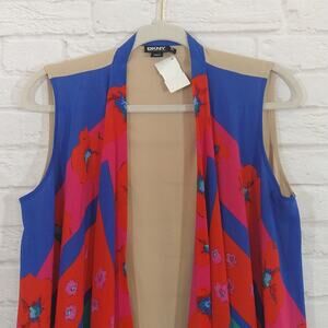 A DKNY Women's Silk Handkerchief Floral Print Sleeveless Kimono Vest Top Size S details: