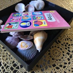 New sticker book for scrap booking, collecting, labeling, kids fun. 144 A Day At The Beach vacation stickers. 12 sheets of twelve beach themed designs with name: Tiffany. Approx 1" x 1" stickers.