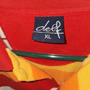 A Delf multicolored striped men's Polo shirt in a size XL.