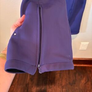 A Diamond in the Snow Women’s Ski Pants, size 4,Winter, Skiing,Snowboard, Vacation, Front Zip Closure, Zippers at bottom of legs to make them wider, Knit Cuffs, Sleek Fitted Silhouette, Polyamid/Polyester/Polyurethane, Machine Wash. These pants are a blue purple color. In Good Pre-Owned Condition, Approximate Measurements in Pictures. Small run as seen in pictures. Personal Piece, One Owner.