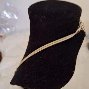 This is a beautiful necklace with a double layered silver tone snake chain and an eye catching pendant with black enameling and a blood red faceted glass stone. This is about 16" long with a 3" extender. This has a very striking look with almost a vampire vibe. It is in nice pre-owned condition.