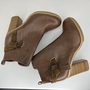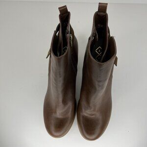 A+ Ellen Chestnut Brown Ankle Boots Womens Size 11 Block Heels Zippered Closure