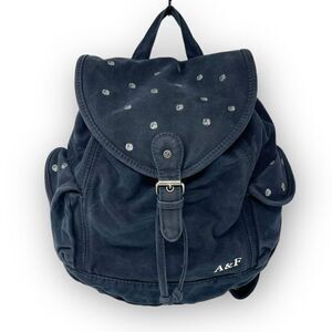A & F Abercrombie & Fitch Blue Fabric Canvas Bag Backpack Silver Dot Spots