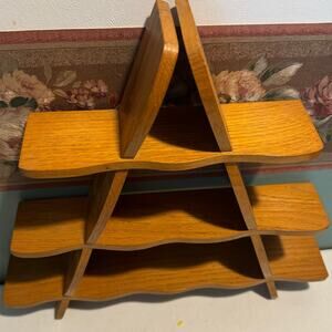 A Frame Triangle Wood 3 Tier Small Shelf Wall Tabletop Cottage Core Knick knack