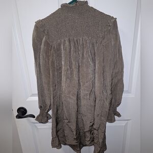This is a French Connection long sleeve ruffled collar shimmering tunic top in a size XS. Lightweight, airy, breezy, coastal, Victorian, top.