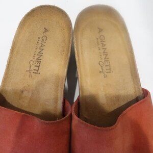 A. GIANNETTI WOMEN'S SANDALS SLIDES CORK WEDGE LEATHER Sz 6.5 Color Pink