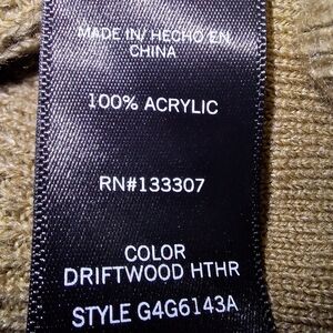 This is a Geoffrey Beene men's long sleeve turtleneck sweater in a size large. It's 100% acrylic and features a lighter color block pattern. Warm, winter, comfy, sweater. 26" PTP, 26.5 Length