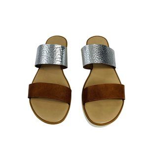 A Giannetti Bohemian Flat Slide Sandal Sz 8 Leather Double Strap Brown Silver Summer Italy