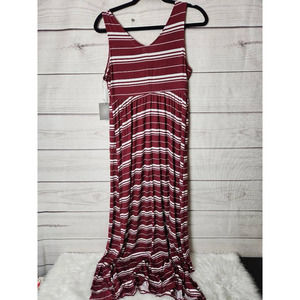A: Glow Womens A Line Dress Red Striped Stretch Maxi Sleeveless Maternity M New
