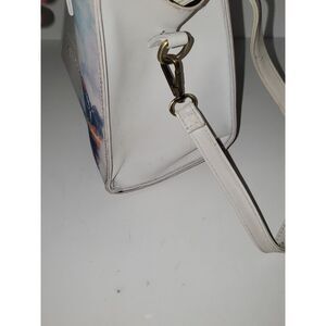 This piece is made by Bio World and is a very cute crossbody style handbag. It has regular top handles and a detachable crossbody strap. This is all white with some really nice graphics and gold metal accents. It is about 8" wide and 7" tall with just one inner pocket that is lined with black velvet. This is a nice collectible piece for Harry Potter fans. It does need some good cleaning but would probably clean up really nice and be a great conversation piece.