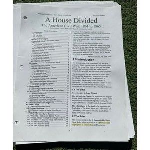 A House Divided The American Civil War 1861-1865 Board Game 2001 Phalanx Rare Edition Version. I believe this is complete, but honestly Im not sure. It comes with lots of additional pages of instructions and versions (says 2006 edition) for advanced extended play, fun for the family, students, and any civil war enthusiast and memorabilia collectors. The cardboard box has some damage (see photos).