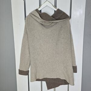A. IDA Women's Brown Cozy Wrap Asym Wool Blend Cardigan XL Italy Minimalist