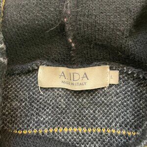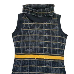 A. Ida Wool Blend Sweater Dress Women's Size Large Black/Yellow Geometric Plaid