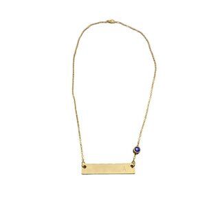 A Initial Horizon Bar Evil Eye Link Chain Necklace Gold Tone