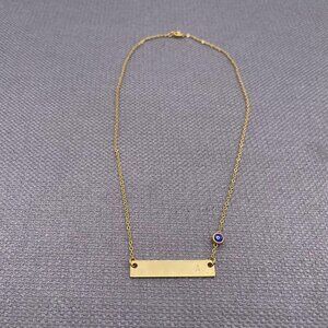 A Marked Horizon Bar Evil Eye Link Chain Necklace Gold Tone Spring Ring Closure 17in