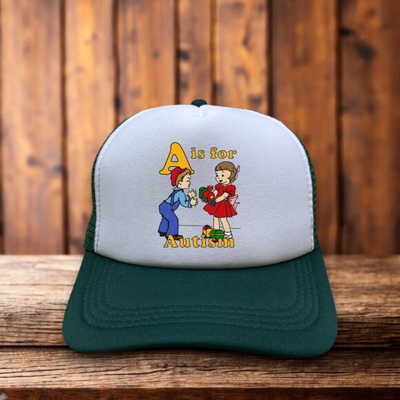 A Is For Autism Mens Trucker Hat Green Snapback Parody Sensory Stimming Cap