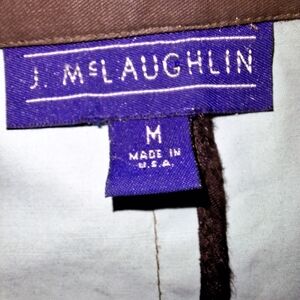 This is a J. McLaughlin brown trench coat/duster in a size medium. It has a waist strap. It's pre-loved and in excellent condition. Perfect for work or play. Professional, office, church, date night. 18" PTP, 35" length