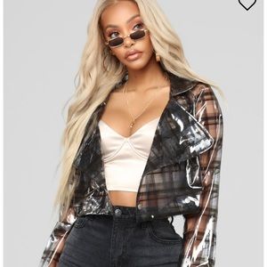 A transparent jacket great for summer vacations