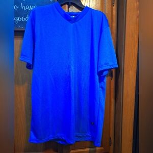 A Jerzees Blue V-Neck Men's Shirt in a Mens Size Large.