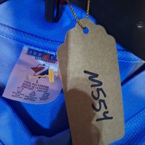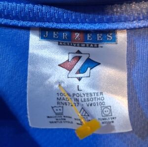 Experience comfort and style with this Jerzees vibrant blue V-neck men's shirt in a size large. Perfect for casual outings or relaxed days. Active, athletic, athleisure, sporty, leisure wear.