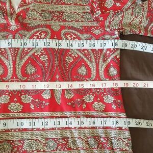 A. Jesdani Womens Blouse Top Paisley Red Size Medium Button Rolled Tab Sleeves