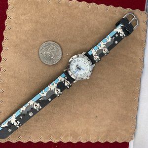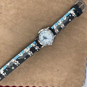 A Kid and Their Dog...From the Kids Watch Company Molded Rubber Dogs Strap with a Dog Second Hand Rotating in the middle 7.5 inch Strap 1 inch silver tone case stainless steel back and water resistant 50 feet