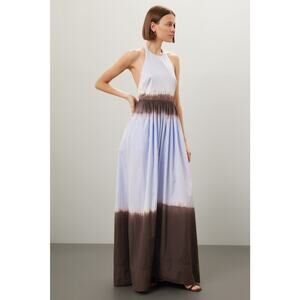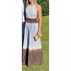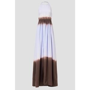 A. L. C. Multicolored Cotton Tan White Halter Neck Maxi Dress Size 6