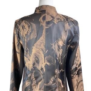 A La Carte Brown Pattern Band Collar Stretch Lightweight Button Up Jacket Pocket