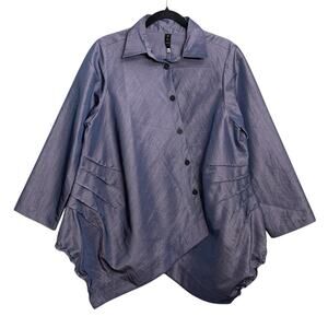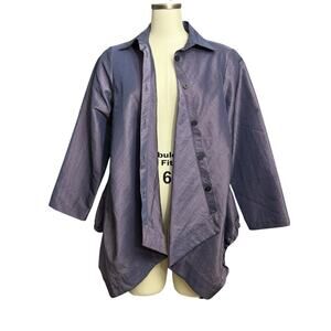A La Mode by XiAO Taffeta Jacket Womens M Purple Asymmetrical Button Lagenlook
