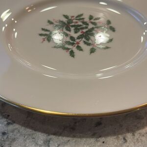 A- Lenox Special Dinner Plate Holly & Berries w/ Gold Trim 10 1/2” set 2 plates
