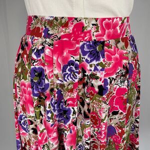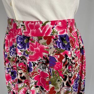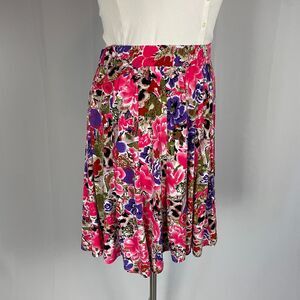 A Line Skirt Womens Size XL Pink Floral Print Knee Length Stretch Pull On Spring