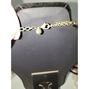 This loft necklace has a lot of sparkle from the faceted clear beads. It has pieces that are gold tone and some that are silver tone. The chain links are large and open, and this piece can be worn very long, or you can easily shorten it up by clipping it higher along the chain. It could also be worn doubled for a layered effect. It is 36" long and in nice pre-owned condition.