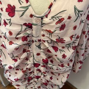 Women A Love Story Floral Sheer Lined Ruched Button front