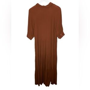 A Loves A Button Down Front Tiered Midi Shirt Dress Boho Autumn Burnt Orange L