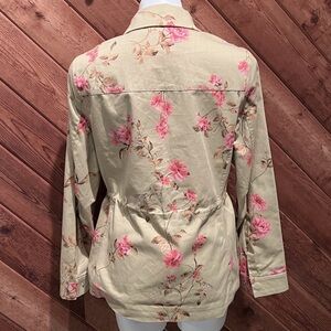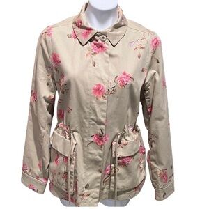 A Loves A Floral Cinched Waist Beige Pink Full Zip Lightweight Jacket Medium