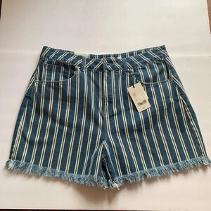 A Loves A Frayed Hem Denim Stripe Cut Off Shorts