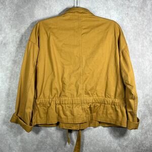 A Loves A Jacket Womens Small Mustard Yellow Snap Front Peplum Hem Cropped