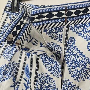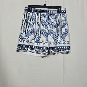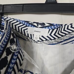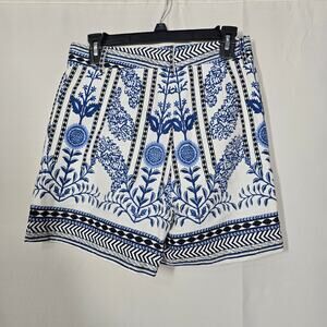 A Loves A Linen Blend Blue Floral Print High Rise Pleated Front Shorts Size 4