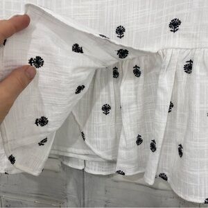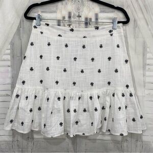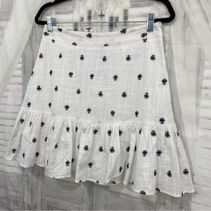 A Loves A Size 12 Mini Skirt Floral White Gauzy Cotton Linen Cotton Linen Ruffle