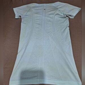 A Lululemon women's size 6 tee shirt. Pre-loved in good condition