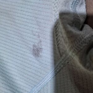 This is a Lululemon women's T-shirt. It's a size 6. It has 2 spots, one on the lower front and one at the pit (see pics). Athletic, athleisure, sports, running, jogging, walking, workout, lounging, summertime shirt.