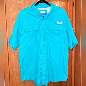 This is a Magellan Outdoors men's medium short sleeve button-down moisture wicking relaxed fit shirt. It's a Laguna Madre style. This is designed as fishing gear but is ideal for any occasion.