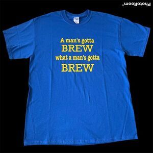 A Man Gotta Brew Graphic T shirt Men's Size Large Blue NEW No Tags