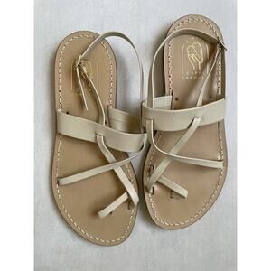 A. Mano Capri Sandals Flats Shoes Strapply Leather Tan Italy