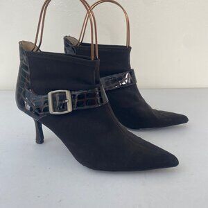 A. Marinelli Ankle Boots Shoes Pointed Toe Brown Crocodile