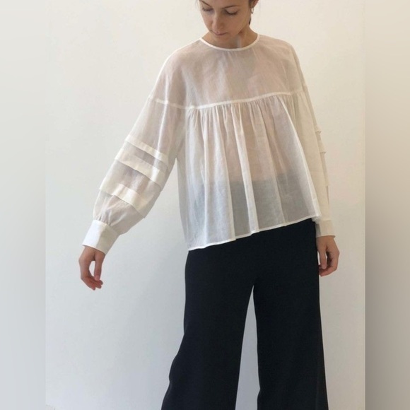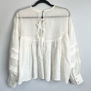 A Mente Size M • White Linen Oversized Long Sleeve Blouse Top.